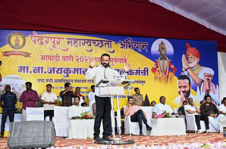 पंढरपूर/सोलापूर/जिमाका,दि.२२/०६/ २०२५:-पंढरपूर शहर महास्वच्छता अभियान 2025 अंतर्गत एकाच वेळी सकाळी सात ते दहा या कालावधीत 42 ठिकाणी स्वच्छता मोहीम राबवून 148 कचरा गोळा करण्यात आला.या मोहिमेत सोलापूर जिल्हा प्रशासना तील अधिकारी,कर्मचारी,सामाजिक संस्थांचे स्वयंसेवक,विविध सामाजिक संघटना, पंढरपूर शहरातील नागरिक यांनी सक्रिय सहभाग घेऊन ही विठुरायाची नगरी बहुतांश स्वच्छ केली आहे.या मोहिमेतून पंढरपूर शहर व येथे येणाऱ्या हजारो भाविकांच्या घरोघरी स्वच्छतेचा संदेश पोहोचविण्याचे क्रांतिकारी कार्य घडले असल्याचे प्रतिपादन राज्याचे ग्रामविकास व पंचायतराज मंत्री तथा सोलापूर जिल्ह्याचे पालकमंत्री जयकुमार गोरे यांनी केले.