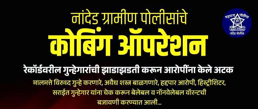 नांदेड पोलिसांकडून मोठी कारवाई; कोम्बिंग ऑपरेशनमध्ये रेकॉर्डवरील २२ गुन्हेगारांवर कारवाई