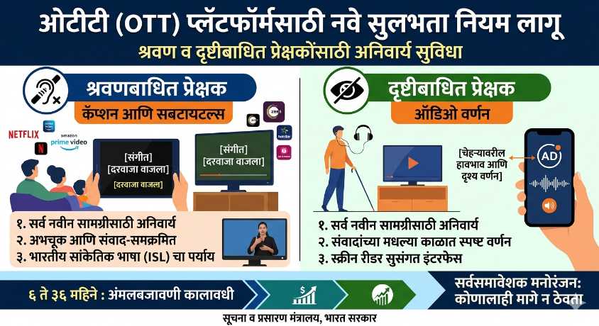 OTT प्लॅटफॉर्मसाठी नवे नियम लागू : श्रवण व दृष्टीबाधित प्रेक्षकांसाठी कॅप्शन आणि ऑडिओ सुविधा अनिवार्य