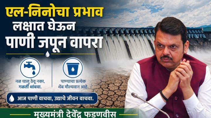त्यासोबतच एल-निनोच्या प्रभावामुळे या वर्षी पाऊस कमी होण्याची शक्यता असल्याने पुढील वर्षी पुरेसे पाणी उपलब्ध व्हावे या दृष्टीने आतापासून पाण्याचा जपून वापर करण्याचे आवाहनही मुख्यमंत्री देवेंद्र फडणवीस यांनी केले.